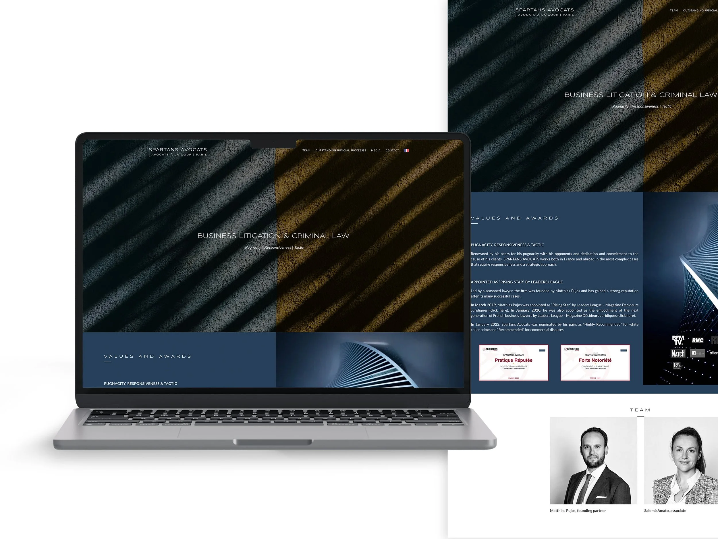 I was in charge of creating a branding to promote this law firm business - font, color palette, logo, visuals - to then develop a bespoke website matching their expectation.